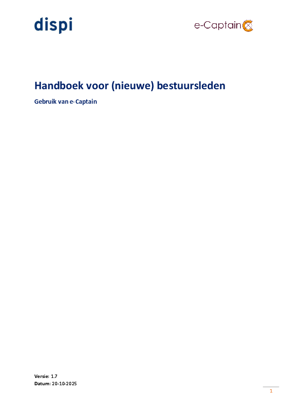 Met dit handboek willen wij nieuwe bestuursleden snel en gestructureerd op weg helpen in het gebruik van e-Captain. Of u nu penningmeester, secretaris of algemeen bestuurslid bent, het is belangrijk dat u snel vertrouwd raakt met de mogelijkheden van het systeem.